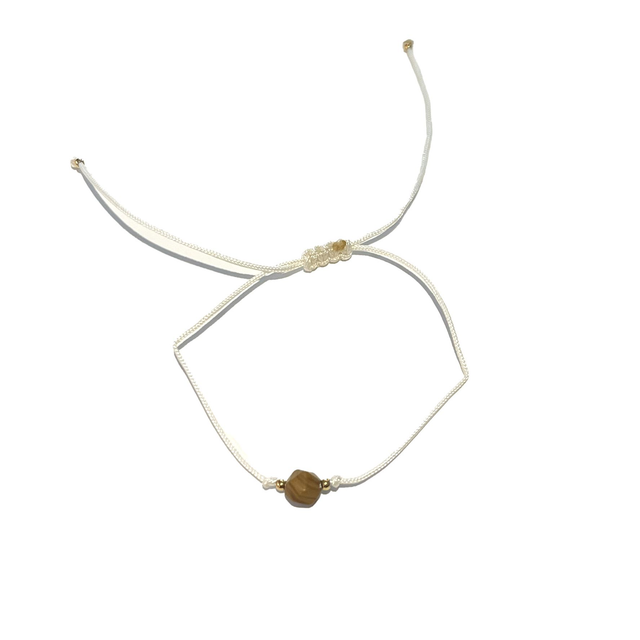 Ręcznie wykonana bransoletka na regulowanym sznurku z naturalnym kamieniem. Dzięki możliwości wyboru koloru sznurka, rodzaju przekładki oraz kamienia, stworzysz biżuterię idealnie dopasowaną do siebie lub na wyjątkowy prezent. Naturalne kamienie mogą delikatnie różnić się kolorem i strukturą, co podkreśla ich autentyczność.